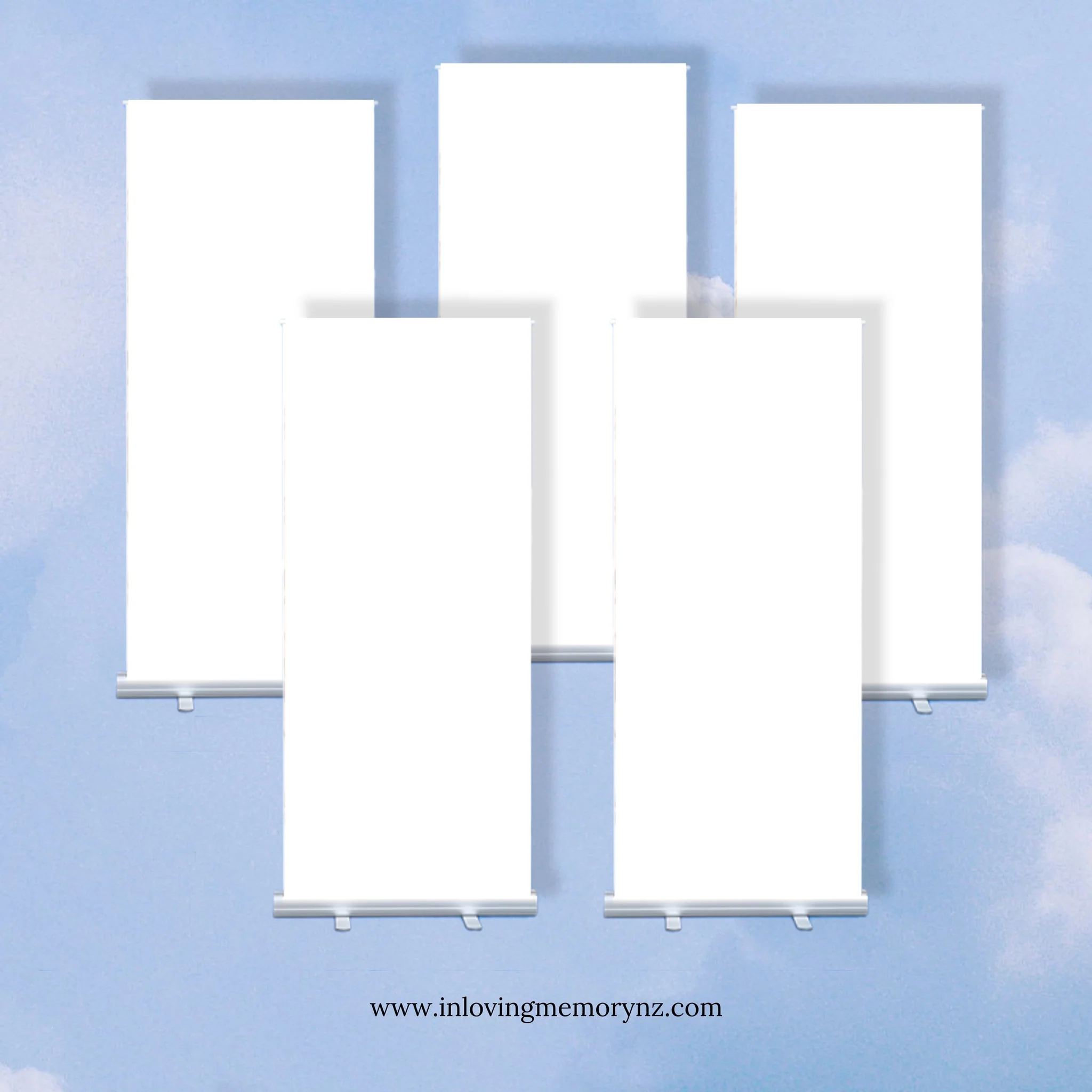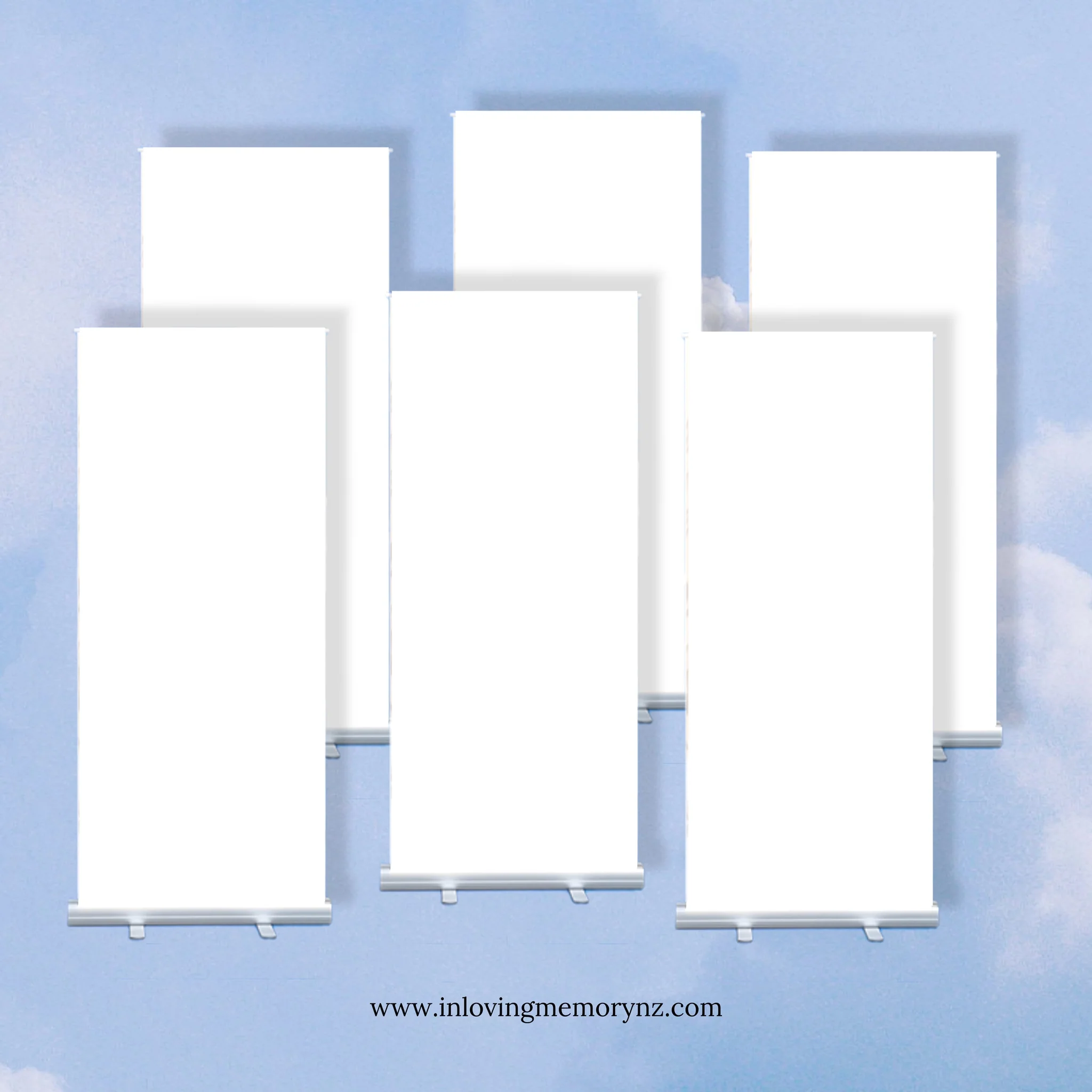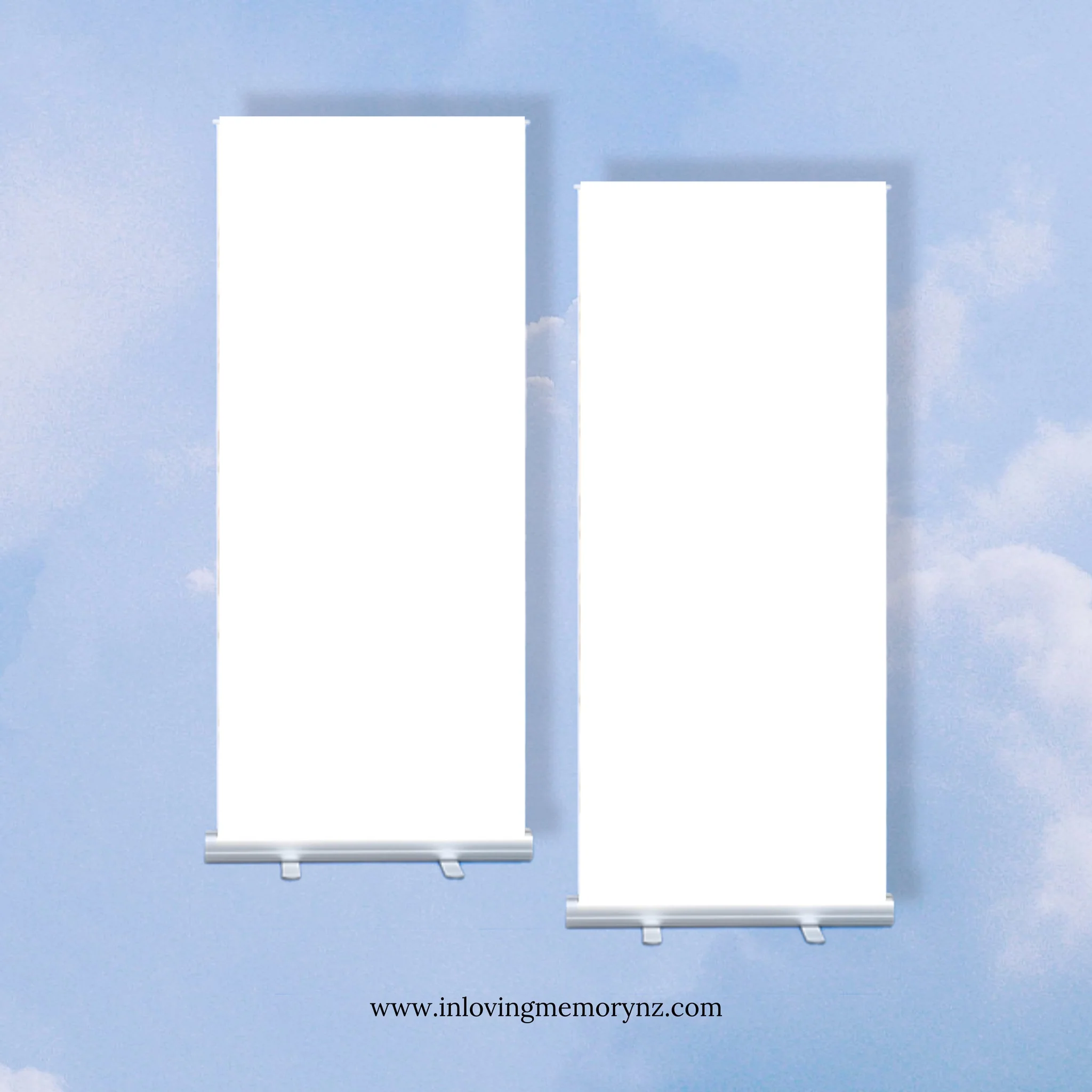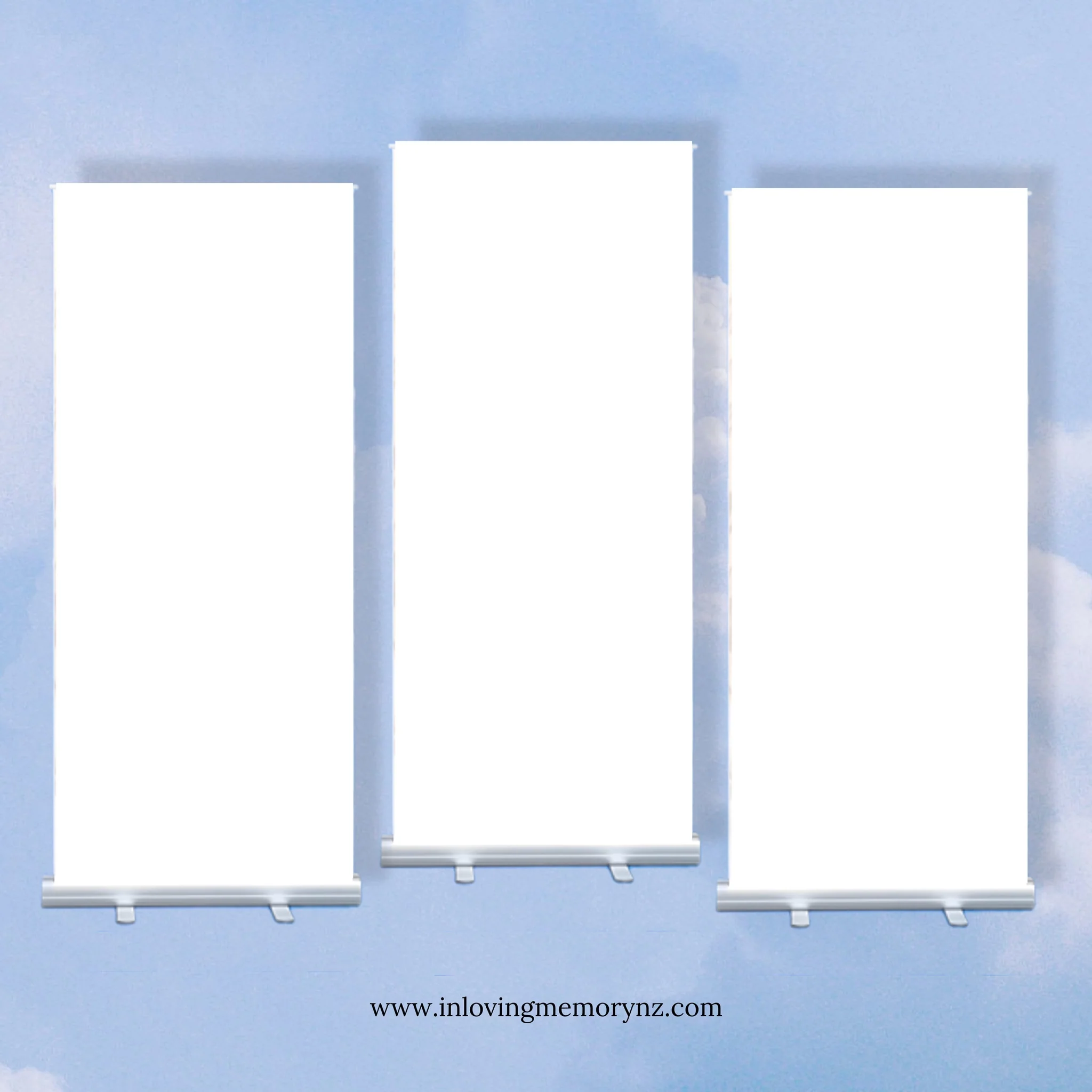 Banners are the main attraction for events. Showcase your loved one with an image that highlights their life. It’s conveniently quick to assemble within seconds, before services and burials. Our pull up banners come preassembled with everything you need. We are also available to design and make for any other occasion.